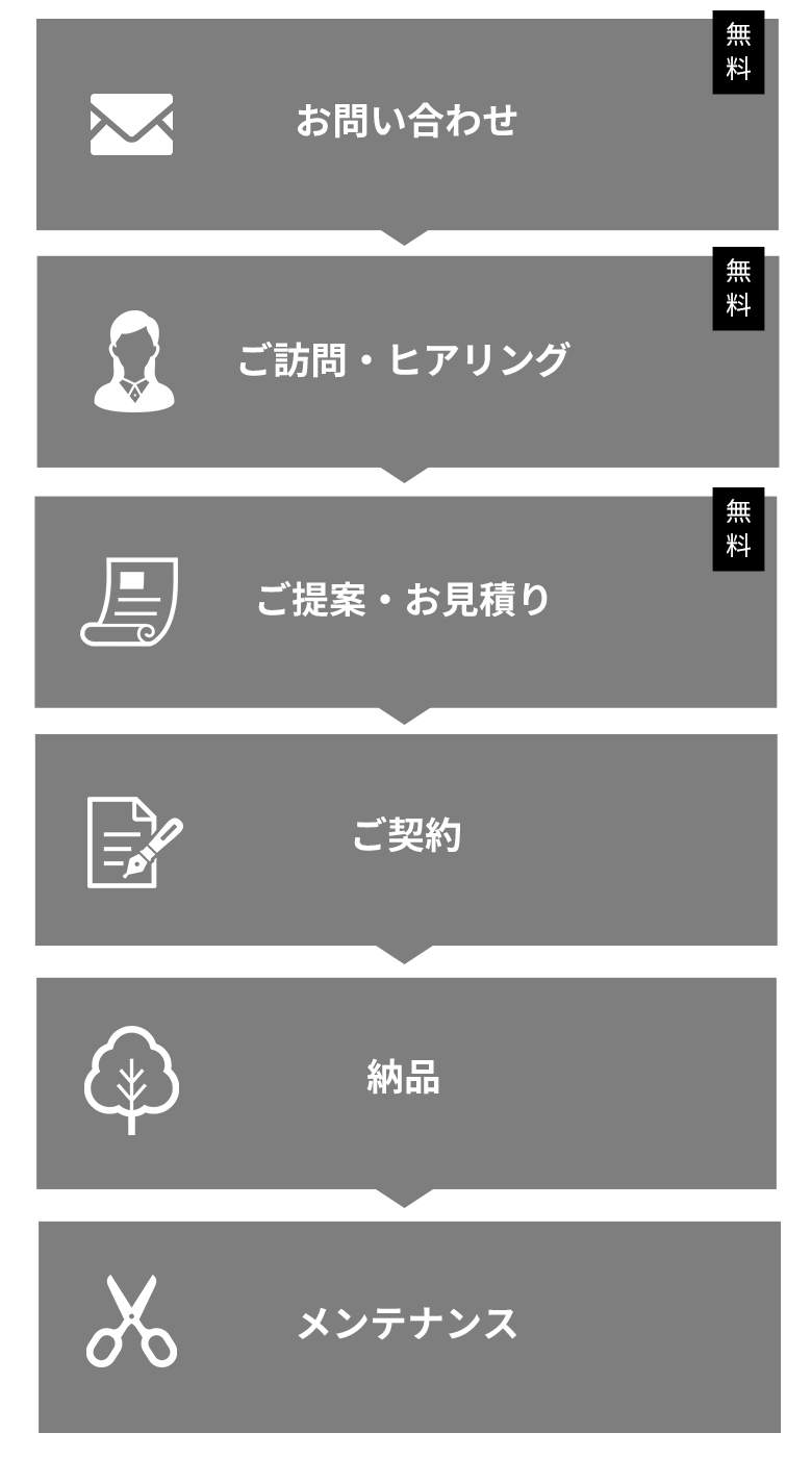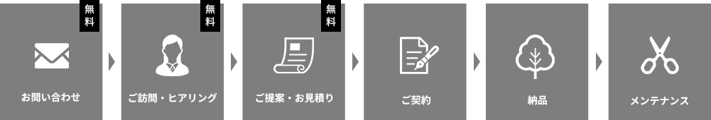 プロによる定期的なメンテナンスサービスを行います。万が一枯れた場合も無償で交換いたします。